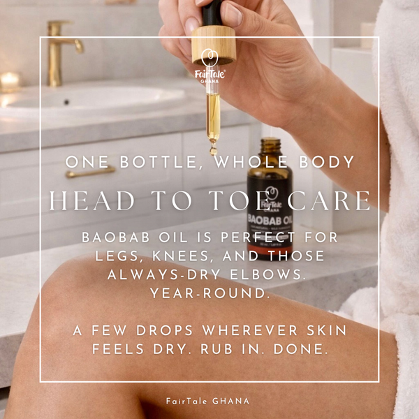 Both Shea butter and Baobab oil are non-comedogenic, so you can use them on face without clogging pores. Shea butter delivers lasting moisture, while Baobab oil offers a fast-absorbing boost, especially for delicate spots like your face, lips, and dry patches.